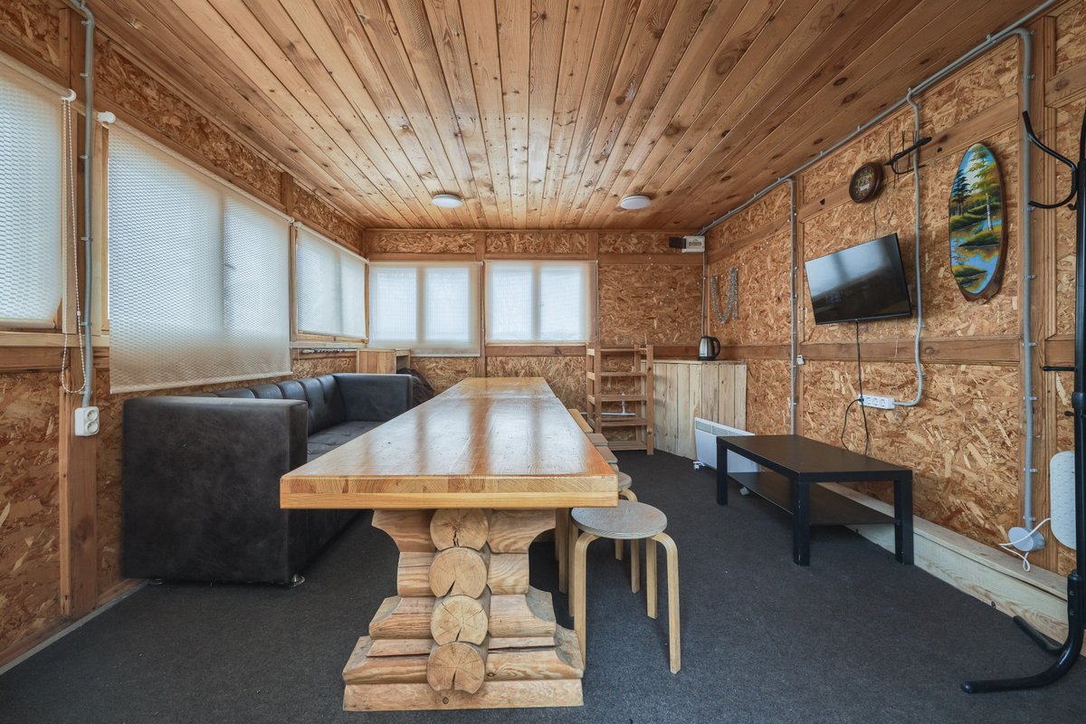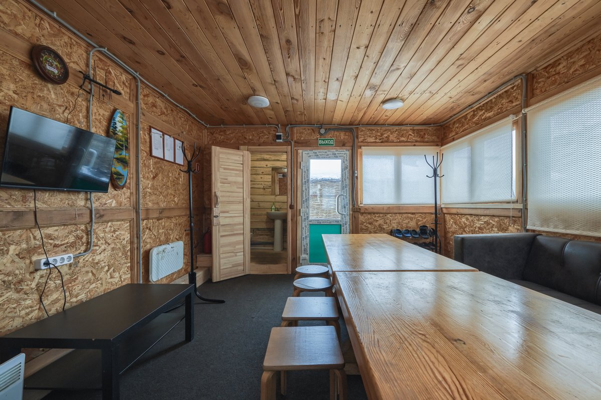 Не хочется в бассейн? Не проблема! Вместо этого можно посидеть в нашей комнате отдыха. Мы ставили своей целью создать здесь уютный, практичный интерьер из преимущественно натуральных, экологичных материалов, выбрать мебель, которая будет в равной степени удобной и приятной глазу. Надеемся, что вам понравится! Для поддержания атмосферы отдыха у нас есть кальян, камин и караоке.